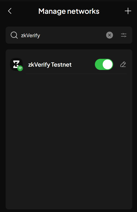 5. Search for "zkVerify Testnet" and activate using the toggle.